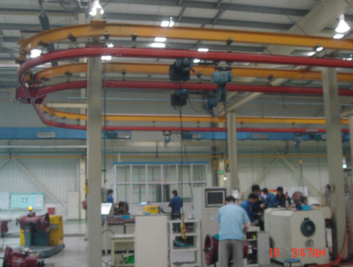 該設備適用于物料(工件)的線性輸送,根據(jù)用戶對物料輸送的傳遞、分配要求,可以組合成直線的、環(huán)形的、分岔的等多種形式的單軌輸送線網(wǎng)絡。通過采用直線、彎軌、道岔、轉盤實現(xiàn)軌道上輸送物料的任意走向。實現(xiàn)往返輸送作業(yè)和環(huán)形輸送作業(yè)。輸送線長度不受限制,可以是簡單的手動控制直線環(huán)形軌道、也可以是多分支的半自動或全自動控制的環(huán)形軌道,并可以實現(xiàn)全線供電、也可以實現(xiàn)分段供電,使每一個運行小車均成為自行驅動行走的輸送單元。