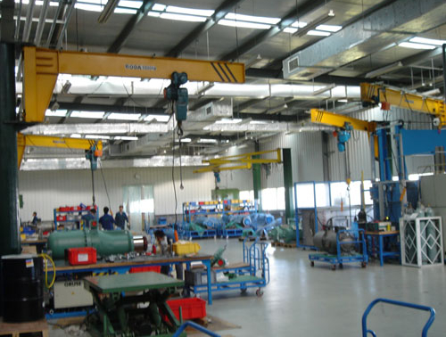 立柱式旋臂吊在旋轉(zhuǎn)范圍內(nèi)產(chǎn)生扇形工作面內(nèi),可有效的進行工件的吊卸工作。室內(nèi)室外多種應(yīng)用場合均可使用,即使在凈空高度很小的室內(nèi)同樣能提供大的提升高度。立柱可用化學(xué)膨脹螺栓直接安裝,也可以使用混凝土預(yù)埋地腳螺栓安裝